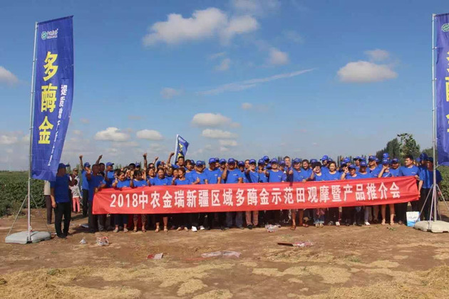 8月22日,中農金瑞在新疆五家渠市召開多酶金功能肥示范田觀摩推介會,當地100余名代理商參加了會議。