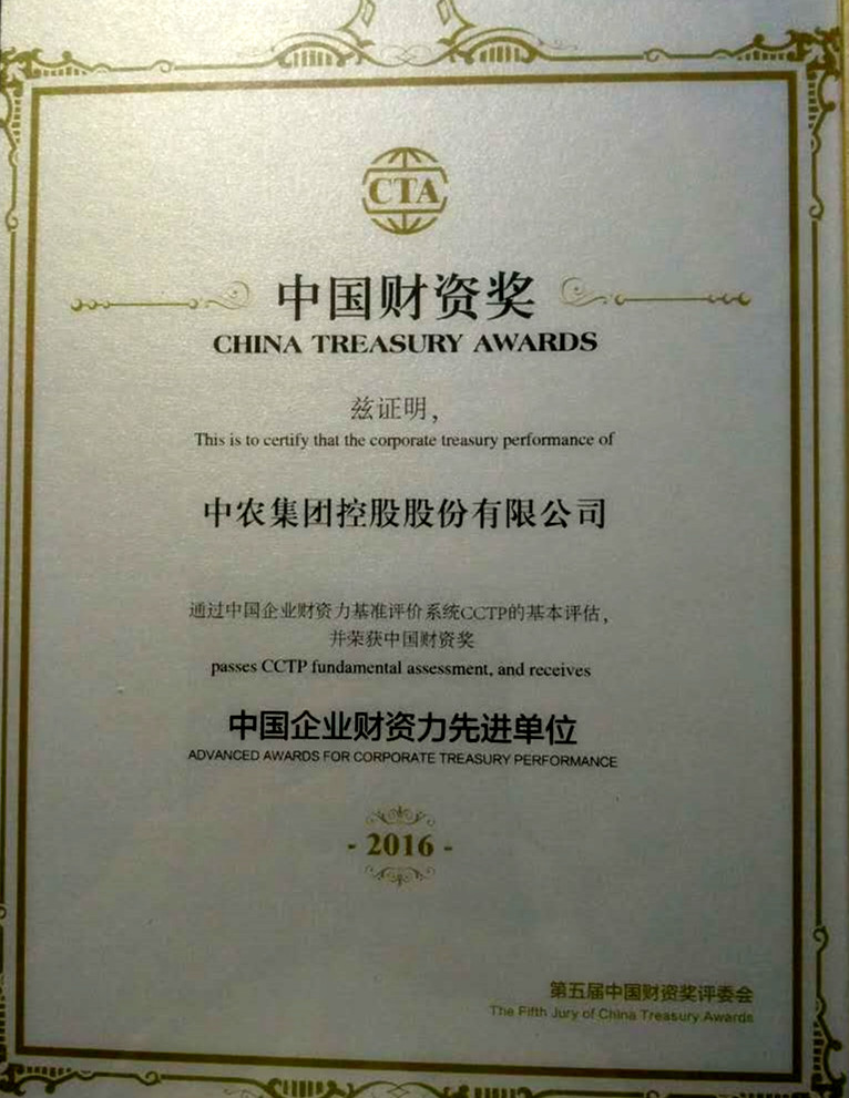 ? ? 中農(nóng)控股通過中國企業(yè)財資力基準評價系統(tǒng)CCTP的基礎評估,在眾多企業(yè)當中脫穎而出,憑借綜合融資能力和企業(yè)的流動性管理能力等財資力方面所取得的成績,獲得首批企業(yè)財資力先進單位。全國共有37家企業(yè)獲得此項殊榮。