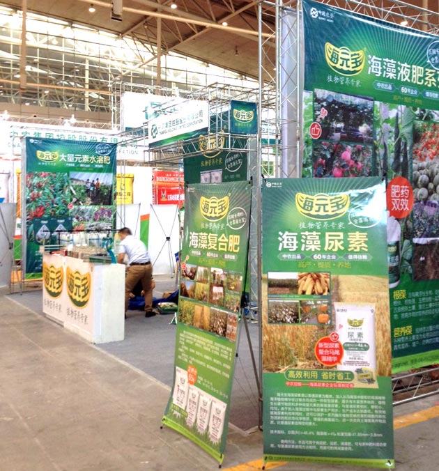 ? ? 中農控股在本次農博會上主要展出了“海元寶”系列海藻肥產品,包括全水溶高塔硝硫基海藻精肥、海藻尿素、高塔海藻肥、氨化海藻肥等生物技術與精細化工技術相結合的創新產品,其中海中葆、營養葆、優抗葆液肥是行業領先的生物技術制劑產品。展會現場,中農控股還展出了“海元寶”海藻肥系列產品在全國各地的田間應用效果,“海元寶”海藻肥專業人員現場對產品的生產工藝,產品復配原理和使用的原材料,田間應用抗逆增產作用機理,產品水溶性等肥料功能性參數進行了詳細講解。