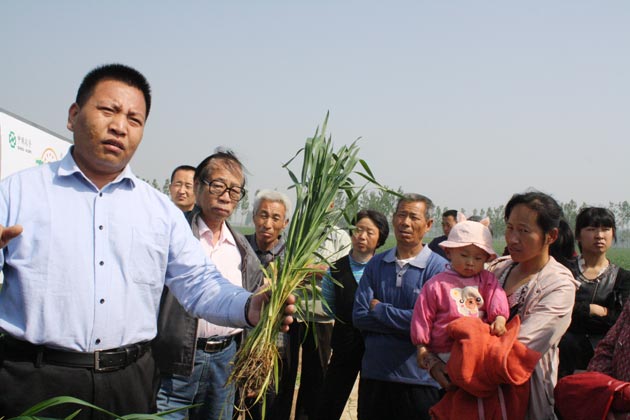 ? ? 4月24-25日,由中農(nóng)集團控股股份有限公司(以下簡稱中農(nóng)控股)和德州市德城區(qū)佳運多棉花種植技術(shù)服務(wù)專業(yè)合作社聯(lián)合主辦的政府有機肥補貼項目試驗田現(xiàn)場觀摩會暨有機肥及低殘留農(nóng)藥推廣項目分別在山東省德州市臨邑縣林子鎮(zhèn)窯廠村和畢家村召開。中農(nóng)控股特聘農(nóng)化專家、原北京市農(nóng)林科學(xué)院植物營養(yǎng)與資源研究所副所長吳玉光、高級農(nóng)藝師閆保福與中農(nóng)控股農(nóng)化服務(wù)人員一道深入田間地頭,為農(nóng)民展示有機肥改良土壤效果并解決種植小麥生產(chǎn)中遇到的問題,向農(nóng)民傳授提高肥料利用率及有關(guān)土壤改良的具體方案,為期兩天的小麥觀摩會吸引了當(dāng)?shù)剞r(nóng)民近100人。