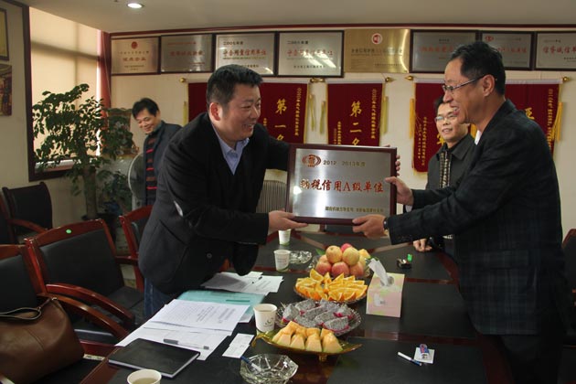 ? ? 日前,湖南隆科農資連鎖有限公司(下稱湖南隆科)被湖南省國家稅務局、湖南省地方稅務局評為“2012-2013年度A級納稅信用單位”。11月21日,長沙市高新區地方稅務局副局長譙春一行5人上門為湖南隆科授牌,湖南隆科總經理米導武、財務總監李星曦出席授牌儀式并與譙春一行進行了座談。