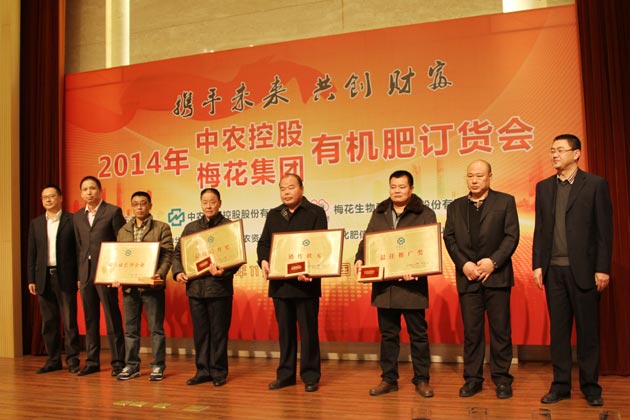 ? ? 近日,由公司與梅花生物科技集團股份有限公司(簡稱“梅花集團”)聯合主辦的有機肥訂貨會在河北廊坊召開,來自全國20多個省市的160多位優秀經銷代表,以及河南、山東、內蒙古、山西、陜西等十余家有機肥企業參加了會議。????? ? 會上,公司與梅花集團共同簽訂了“2014年戰略合作框架協議”。根據協議內容,雙方將緊密結合自身條件,充分發揮各自優勢,計劃在有機肥產銷領域開展深入合作,共同探索建立新形勢下的產銷一體化、渠道共享制的廠商運營模式。? ? 據了解,簽訂戰略協議的同時,公司與梅花集團還初步達成了25萬噸的有機肥聯銷協議,并以訂貨會的形式現場實現對外銷售。會議期間,公司與來自全國各地的100多家經銷商簽訂了2014年有機肥區域總經銷協議,成交合同金額達4000多萬元。
