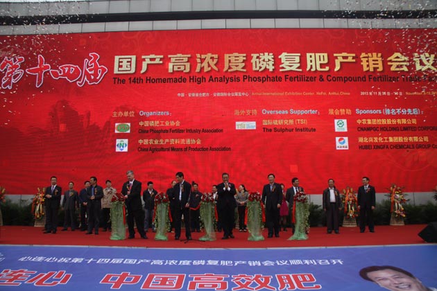 ? ? 11月8-10日,第十四屆國產高濃度磷復肥產銷會在安徽合肥國際會展中心舉行,?總社黨組成員、理事會副主任駱琳,總社黨組成員、理事會副主任顧國新,中國石油和化學工業聯合會會長李勇武,中國磷肥工業協會理事長周竹葉,中國磷肥工業協會名譽理事長武希彥等領導出席開幕式。公司攜旗下五洲豐農業科技有限公司等多家成員企業參展。????展會上,公司以“土壤不能再生,我們關注土壤健康”為主題,通過展架、海報等多種方式,集中展示了公司在產品創新方面取得的一系列成果。展會現場,公司以穩重大氣展臺風格和細致清晰的展示內容,公開明確的將企業經營理念和發展方向對外予以展示,同時在改善土壤環境,保障農品安全方面給予了著重強調,并配合推出“海元寶”、“大地之秀”、“磷福欣”等一系列新型肥料,進一步彰顯出公司強勁的發展態勢和持續堅定的發展信念。展會開幕式結束后,駱琳、顧國新等多位領導親臨公司展位參觀指導,公司展臺工作人員向各位領導重點介紹了各類新型肥料的獨特功效和市場投入效果。? ? 展會期間,公司總經理羅德強作為會議代表,參加了由供銷總社農業生產資料局和中國農業生產資料流通協會聯合舉辦的全國供銷合作社農資企業服務創新經驗交流會暨2013年度中國農資經銷商年會,羅德強以“創新農資產品,發展小型合作社,堅持走產品創新和服務創新之路”為題,就“中國農資”小型合作社的建設和經營與參會者交流成果,分享經驗。在會議當天舉行的“中國農資經銷商最佳合作廠家”評選活動中,公司榮獲第二名的好成績并接受頒獎。