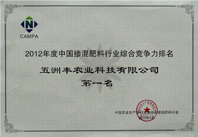 ? ? 近日,由中華合作時報社-中國農資傳媒、中國農業生產資料流通協會摻混肥料分會、國家化肥質量監督檢驗中心(上海)聯合主辦的“第七屆中國BB肥行業發展高層論壇暨全國測土配方施肥典型經驗技術研討會”于北京落下帷幕。在本屆研討會上舉辦的“2013年度中國摻混肥料行業綜合競爭力排名”中,五洲豐農業科技有限公司(以下簡稱“五洲豐”)榮登榜首。??? 中國BB肥行業發展論壇已成功舉辦六屆,在推進BB?肥產業進步、BB?肥行業標準出臺、BB?肥行業分會的成立等方面發揮了重要的作用。五洲豐作為BB國家標準起草單位,始終堅持推動BB肥行業創新和產品升級,致力于促進行業快速規范發展。目前,五洲豐已成功推出“藍色海洋經典”第三代BB肥產品。