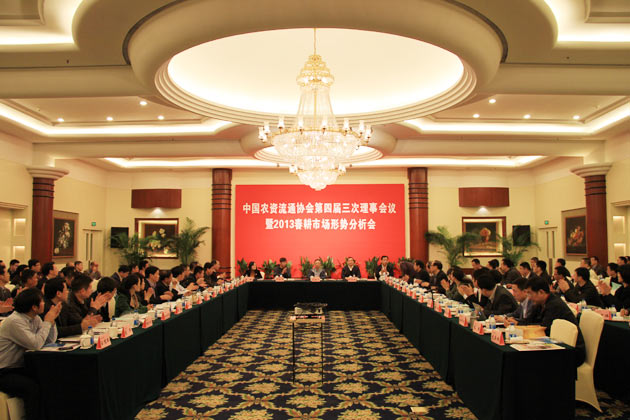 ? ??3月21日,中國農業生產資料流通協會第四屆三次理事會暨2013春耕市場形勢分析會在江蘇無錫召開。中華全國供銷合作總社常務理事、農業生產資料局局長、中國農資流通協會常務副會長楊建平,國家發展和改革委員會經濟貿易司處長付炳其等領導出席了會議。公司副總經理朱聯參會并發表了講話,來自全國各省市的120多位協會理事單位代表參加了會議。 ??