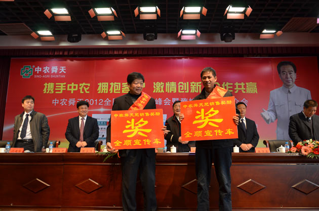?? ?最后,由中農(nóng)舜天常務副總經(jīng)理楊鳳柱宣讀了《關于兌現(xiàn)2011年營銷獎勵政策的決定》,對邱振炎、王步峰等40多位優(yōu)秀經(jīng)銷商進行了隆重表彰。