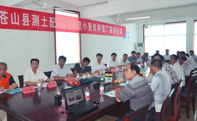 8月10日上午,由蒼山縣農(nóng)業(yè)局聯(lián)合中農(nóng)控股旗下企業(yè)——中農(nóng)舜天生態(tài)肥業(yè)有限公司(簡稱中農(nóng)舜天)組織召開了蒼山縣測土配方施肥暨小麥良種推廣工作會。會議由中農(nóng)舜天常務(wù)副總經(jīng)理?xiàng)铠P柱主持,中農(nóng)舜天總經(jīng)理李日升、山東網(wǎng)聯(lián)肥業(yè)科技有限公司質(zhì)檢部部長劉寶、蒼山縣農(nóng)業(yè)局局長邢安飛、副局長高洪峰、辦公室主任蘇瑞臣、土肥站站長卜凡中、種子公司樊吉嶺,農(nóng)業(yè)局各分管鄉(xiāng)鎮(zhèn)土肥站站長共計(jì)40余人參加了會議。